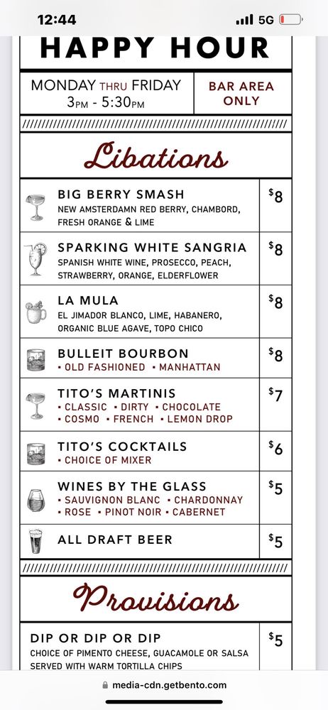 Our House Salad: ranch & red wine vinaigrette, Build-Your-Own Ranchero Chicken Tacos : cheddar-jack, sour cream, lettuce, pico de gallo, Guacamole & Wood-Grilled Salsa: warm tortilla chips, black beans & brown riceDessert: Chocolate Bomb Cake